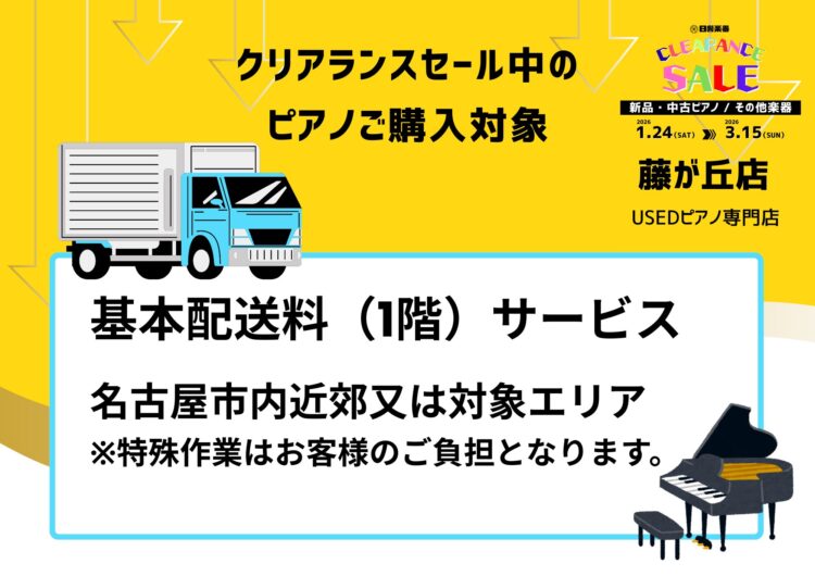 クリアランスセール期間中の基本配送料(1階・名古屋市近郊に限り)サービスです★