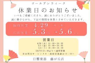 4/29(祝・水)臨4時休業と5/3(日)~5/6(水)GW休業のご案内