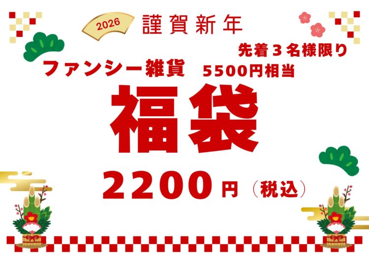 先着3名様限定で5500円相当のかわいい音楽柄小物が入った福袋が2200円(税込)に!!