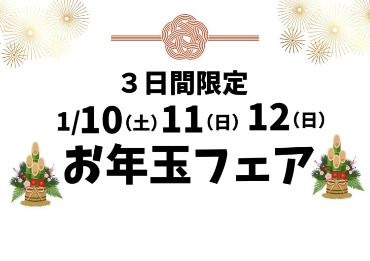 お年玉フェアを2026年1月10日~12日(祝・月)まで開催いたします。